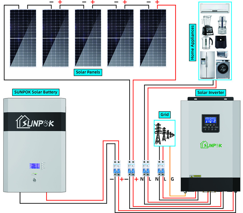 L'energia di Sunpok confermerà quanta potere di PV, potere dell'invertitore e la capacità della batteria il sistema ha bisogno secondo la collocazione ragionevole di ogni componente, in modo da prolungare il tempo di impiego del sistema.