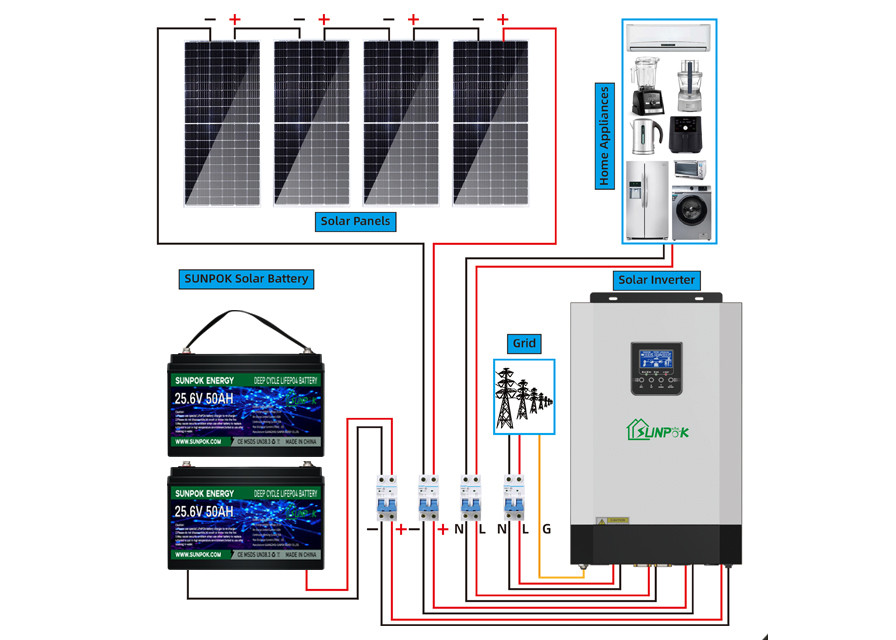 L'energia di Sunpok confermerà quanta potere di PV, potere dell'invertitore e la capacità della batteria il sistema ha bisogno secondo la collocazione ragionevole di ogni componente, in modo da prolungare il tempo di impiego del sistema.