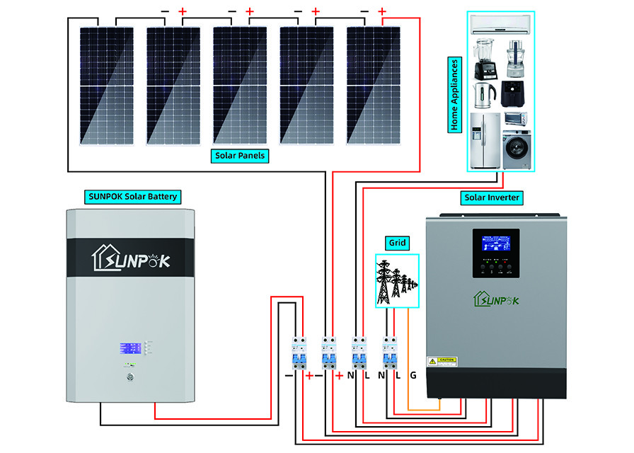 L'energia di Sunpok confermerà quanta potere di PV, potere dell'invertitore e la capacità della batteria il sistema ha bisogno secondo la collocazione ragionevole di ogni componente, in modo da prolungare il tempo di impiego del sistema.
