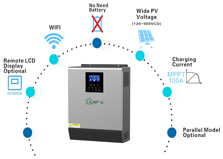 L'invertitore ad alta frequenza monofase di fuori griglia di Sunpok 5Kw è adatto aree senza potere, aree nomadi, stazioni base di comunicazione, aree con potere instabile, isole, posti di frontiera, uffici scenici della gestione, chioschi, pacchetti della batteria per i produttori della batteria, ecc. ha fornito dell'esposizione di LED, sostiene USB/RS232/RS485/Bluetooth/Dry-contact, la progettazione compatta e la prestazione a costi elevati.
