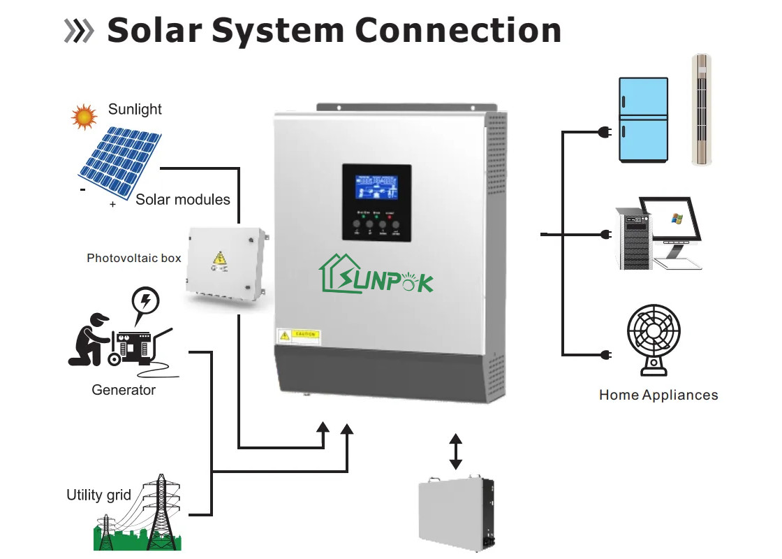 L'invertitore ad alta frequenza monofase di fuori griglia di Sunpok 5Kw è adatto aree senza potere, aree nomadi, stazioni base di comunicazione, aree con potere instabile, isole, posti di frontiera, uffici scenici della gestione, chioschi, pacchetti della batteria per i produttori della batteria, ecc. ha fornito dell'esposizione di LED, sostiene USB/RS232/RS485/Bluetooth/Dry-contact, la progettazione compatta e la prestazione a costi elevati.